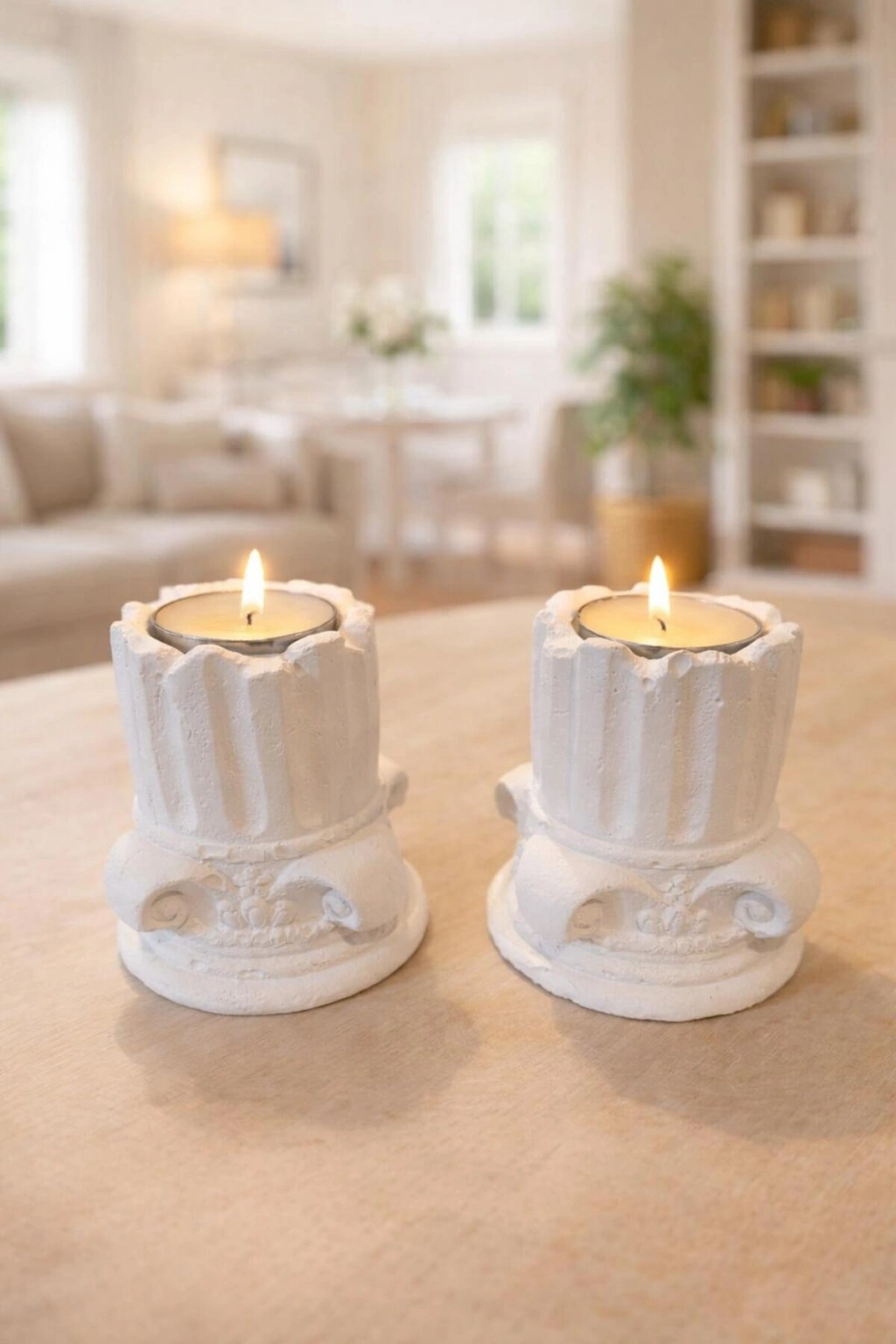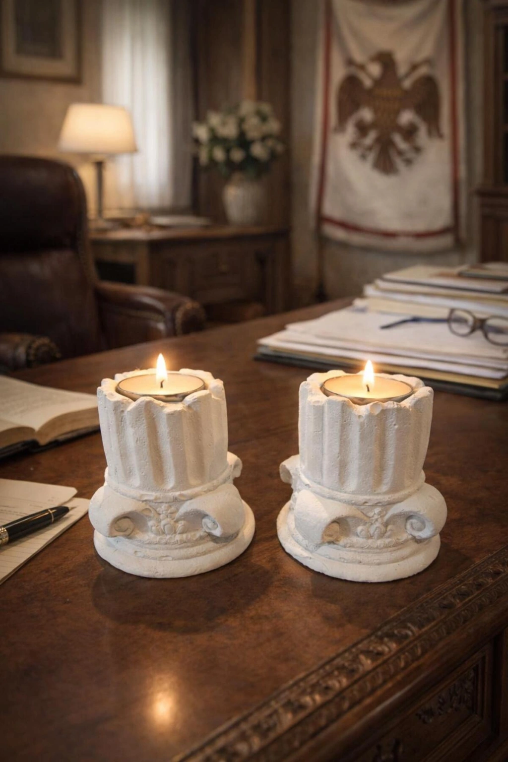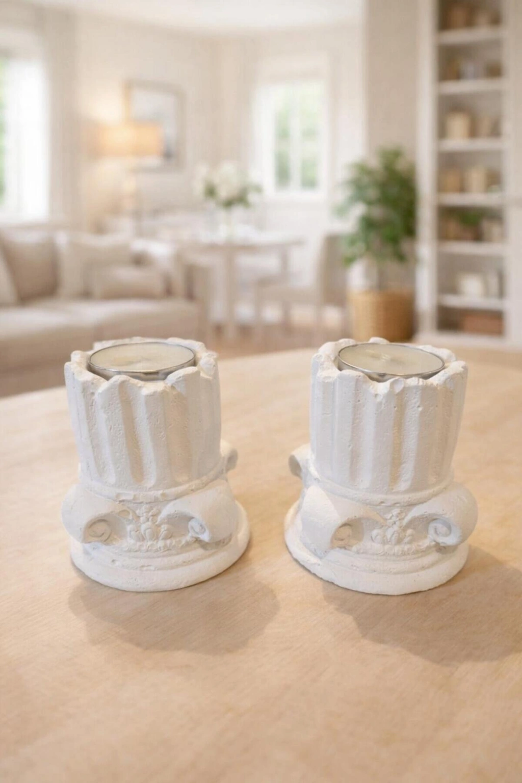 Evinizde, ofisinizde muhteşem tarihi görünüm sağlayan sütunlar sizleri İyonya'nın en ihtişamlı yıllarına götürecek, evinize veya ofisinize gelecek misafirlere görsel şölen yaşatacak.; Set içeriğinde 2 adet sütun ve sütünların üst bölmesine konacak 2 adet tealight mum bulunmaktadır.; Tarihi dokunun anlaşılması açısından yıpratılmış bir görünüm verilmiştir.; Güzel günlerinize eşlik etmesini dileriz