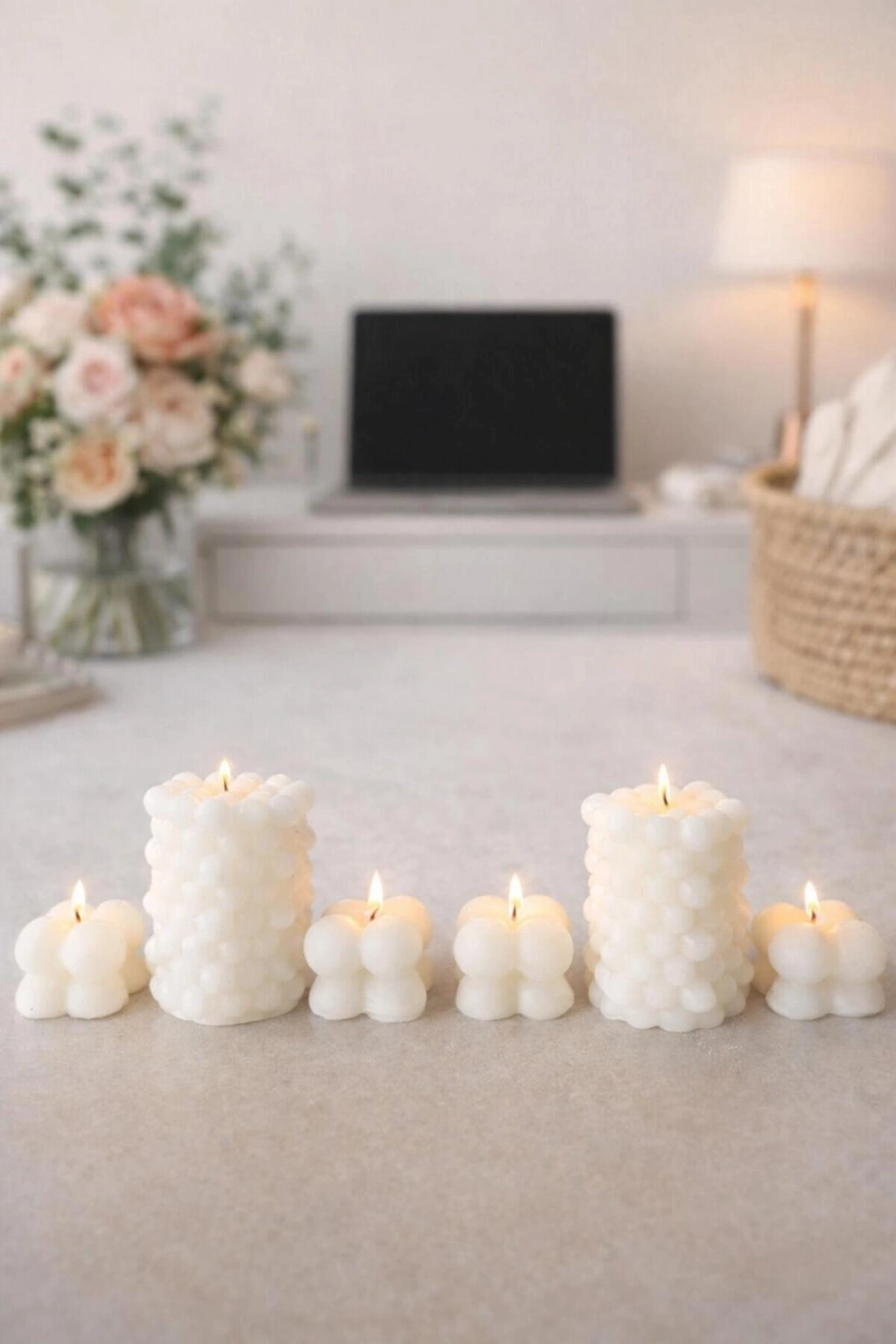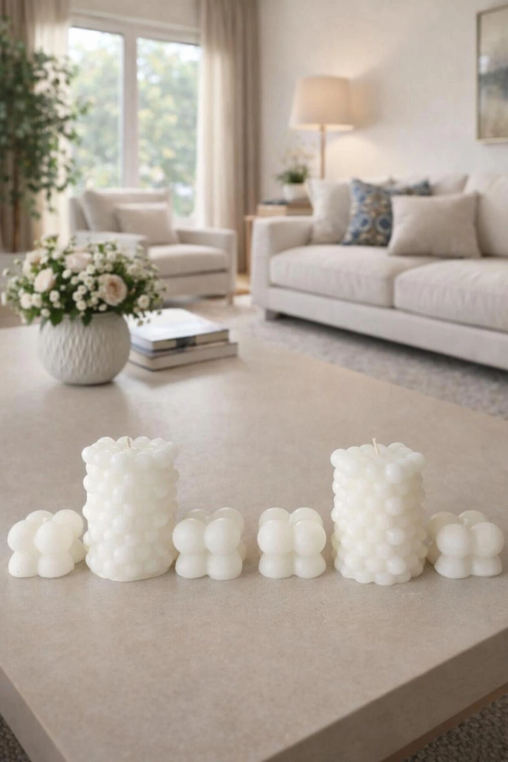 Modern ve sade dekorasyonu sevenler için özel olarak tasarlanan ve 6 parçadan oluşan dekoratif bubble mum seti, yaşam alanlarınıza şıklık ve sıcak bir atmosfer katar.; Bubble formlu mumlar, orta sehpa, konsol, raf ve vitrin dekorasyonu için idealdir.; El yapımı olarak üretilen bu mumlar, minimalist ve modern ev dekorasyonuna mükemmel uyum sağlar.; Yakıldığında estetik bir görünüm sunar, yakılmadan da dekoratif obje olarak kullanılabilir.; ✨ Öne Çıkan Özellikler: Bubble (baloncuk) tasarım El yapımı üretim Minimalist & modern stil Beyaz renk – her dekorla uyumlu Salon, yatak odası, ofis ve hediye kullanımı için ideal ? Kullanım Alanları: Ev dekorasyonu Salon & sehpa üstü süsleme Hediye (Sevgililer Günü, yeni ev hediyesi, özel günler) Vitrin & raf dekoru ? Not: Ürün el yapımı olduğu için ölçülerde ve yüzey dokusunda küçük farklılıklar olabilir.